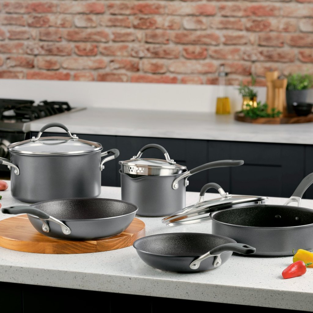 - moderni grafiitinharmaa viimeistely antaa keittoastioille tyylikkään ulkonäön, joka sopii mihin tahansa keittiöön