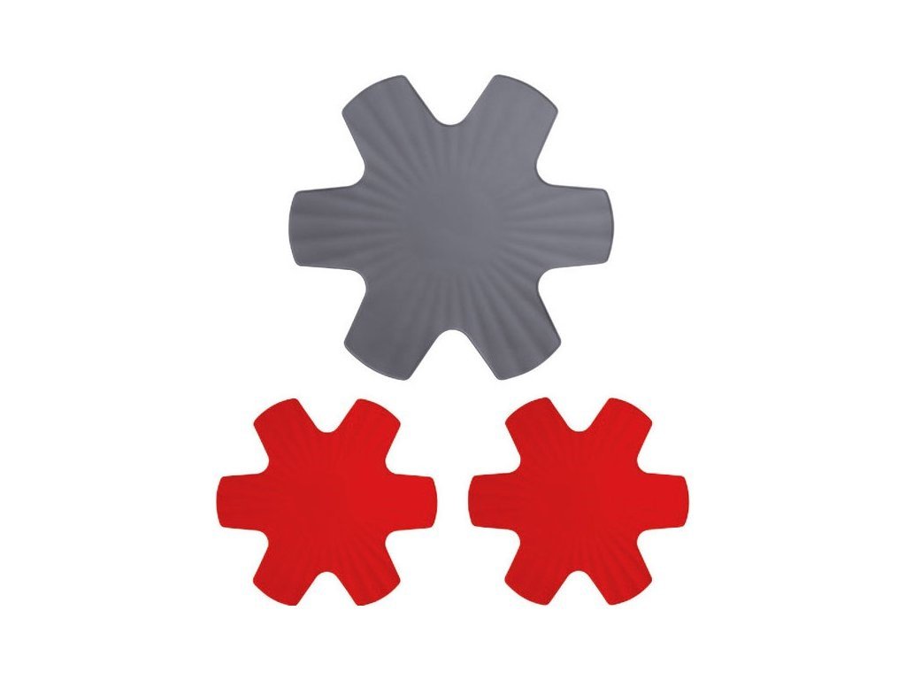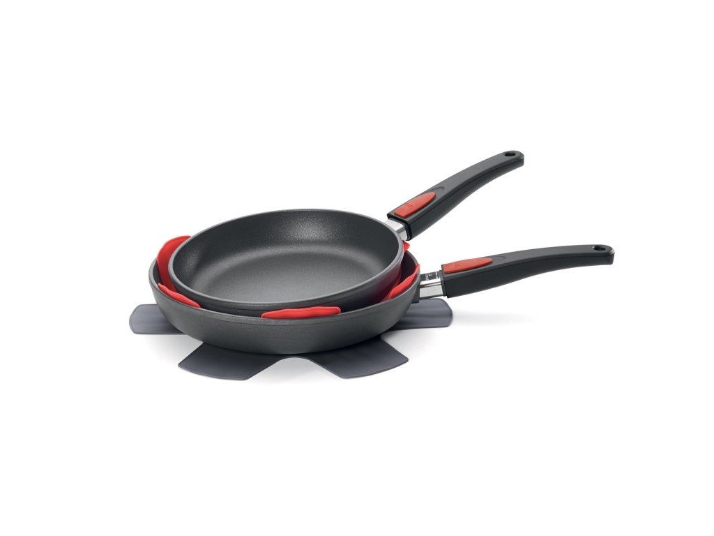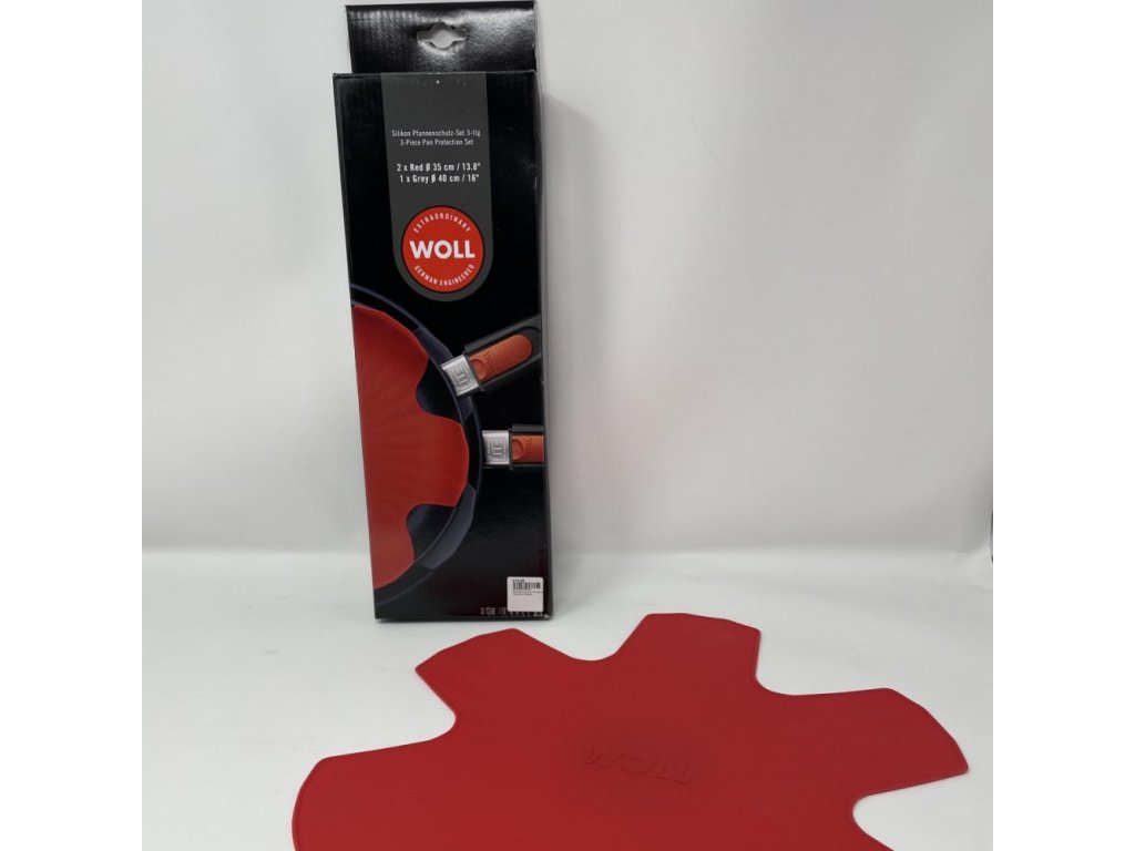 Saksalaisen tuotemerkin pannujen säilytykseen tarkoitettujen suojavuorien sarja WOLL sisältää kaksi punaista vuorausta, joiden halkaisija on 35 cm, ja yhden harmaan vuorauksen, jonka halkaisija on 40 cm. Niiden valmistuksessa käytettiin korkealaatuista silikonia, joka kestää jopa 230 °C:n lämpötiloja. Sisäkkeet ovat hygieenisiä, helppoja puhdistaa ja astianpesukoneessa pestäviä, mikä säästää energiaa. Voit käyttää niitä myös mattona kattilan tai pannun alla.