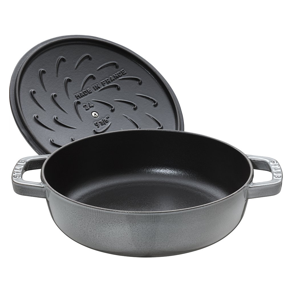 Chister-paistinpannu, jossa on valurautainen "itsestään paistuva" kansi, takaa, että kaikki, mitä siinä valmistat, on herkullista ja herkkää. kannen alapuolella oleva "Chistera Drop-Structure" edistää veden jatkuvaa kiertoa kattilassa, mikä luo ihanteelliset olosuhteet hitaalle kypsentämiselle ja hauduttamiselle. Ruoanvalmistus Staub -keittoastioissa on erittäin helppoa paitsi keittoastioiden hyväksi havaitun muodon myös käytetyn materiaalin ansiosta.