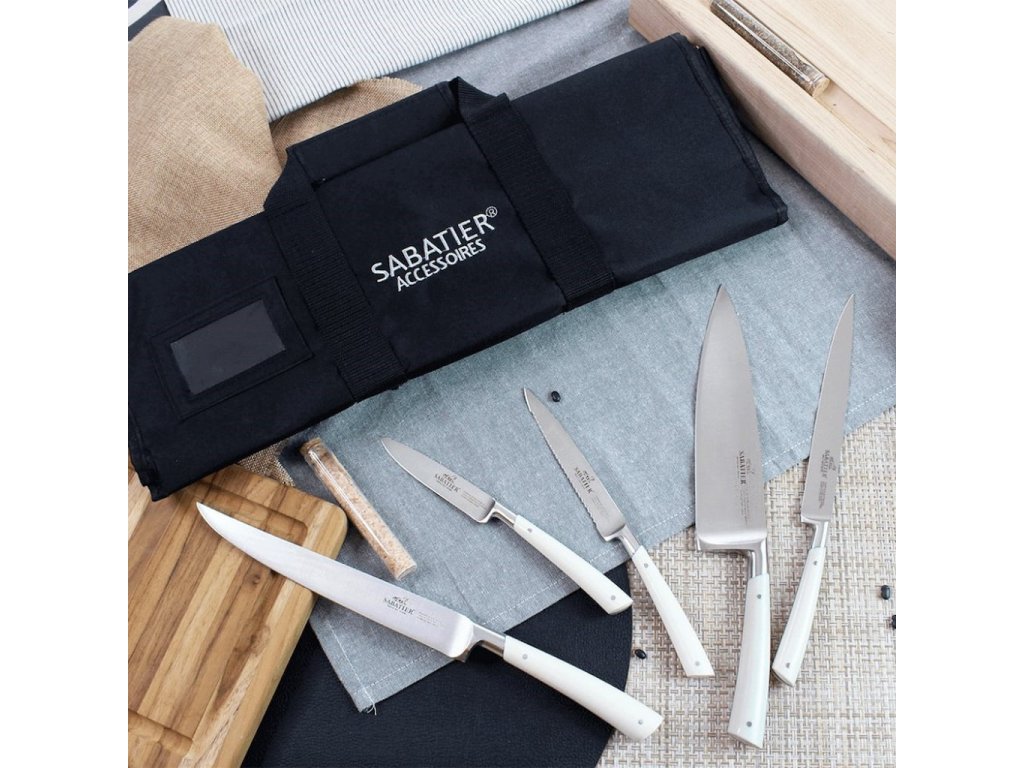 - Kahvojen helmiäishohtoinen valkoinen -väri antaa veitsille ylellisen ilmeen ja sopii hyvin yhteen terien ruostumattomasta teräksestä kiillon kanssa.