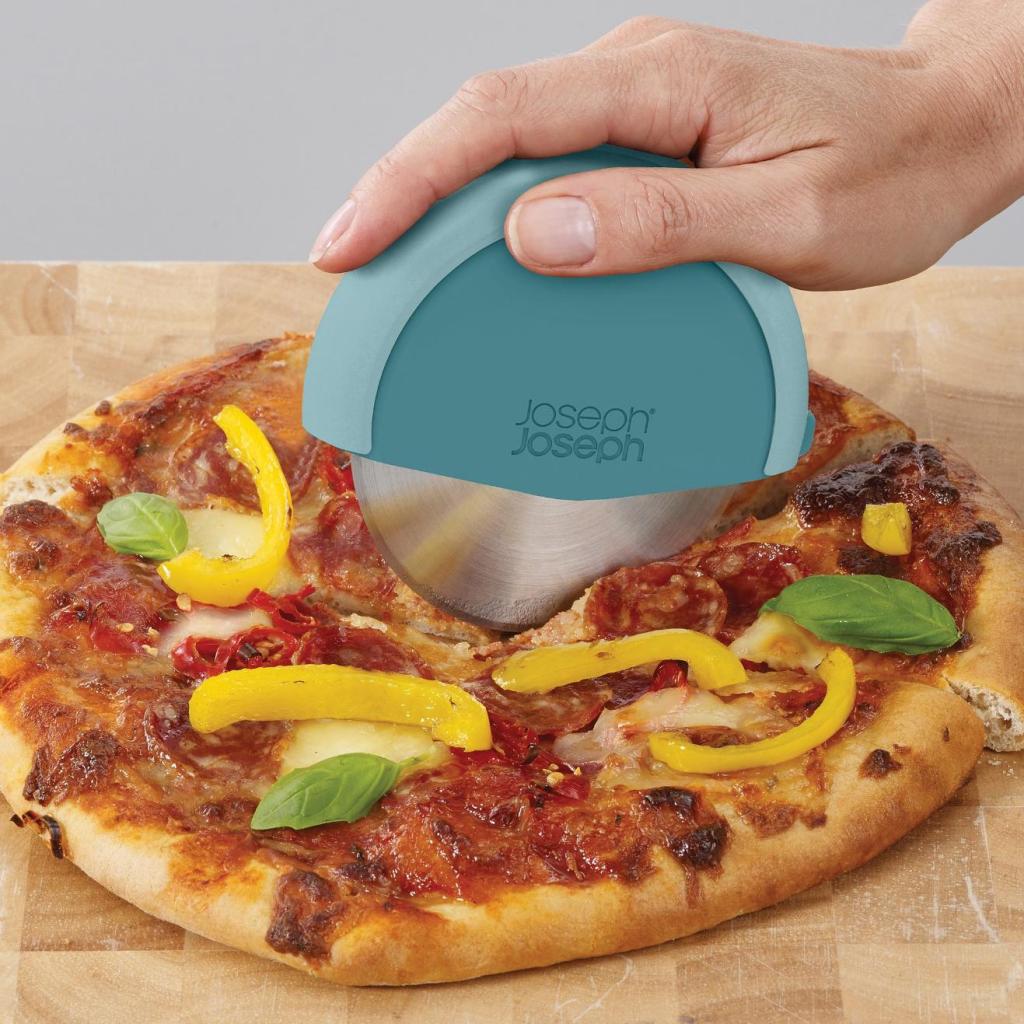 - Pitsaveitsi Joseph Joseph DUO on käytännöllinen apulainen pizzan, kakkujen ja ohuen taikinan helppoon ja tarkkaan viipalointiin ilman tarpeetonta vaivaa.