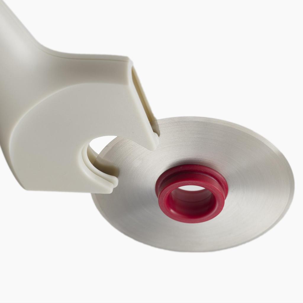 - Terävä, pyörivä ruostumattomasta teräksestä valmistettu terä leikkaa helposti taikinan ja täytteen läpi, joten pizzan tai piirakoiden viipalointi on nopeaa ja sujuvaa.