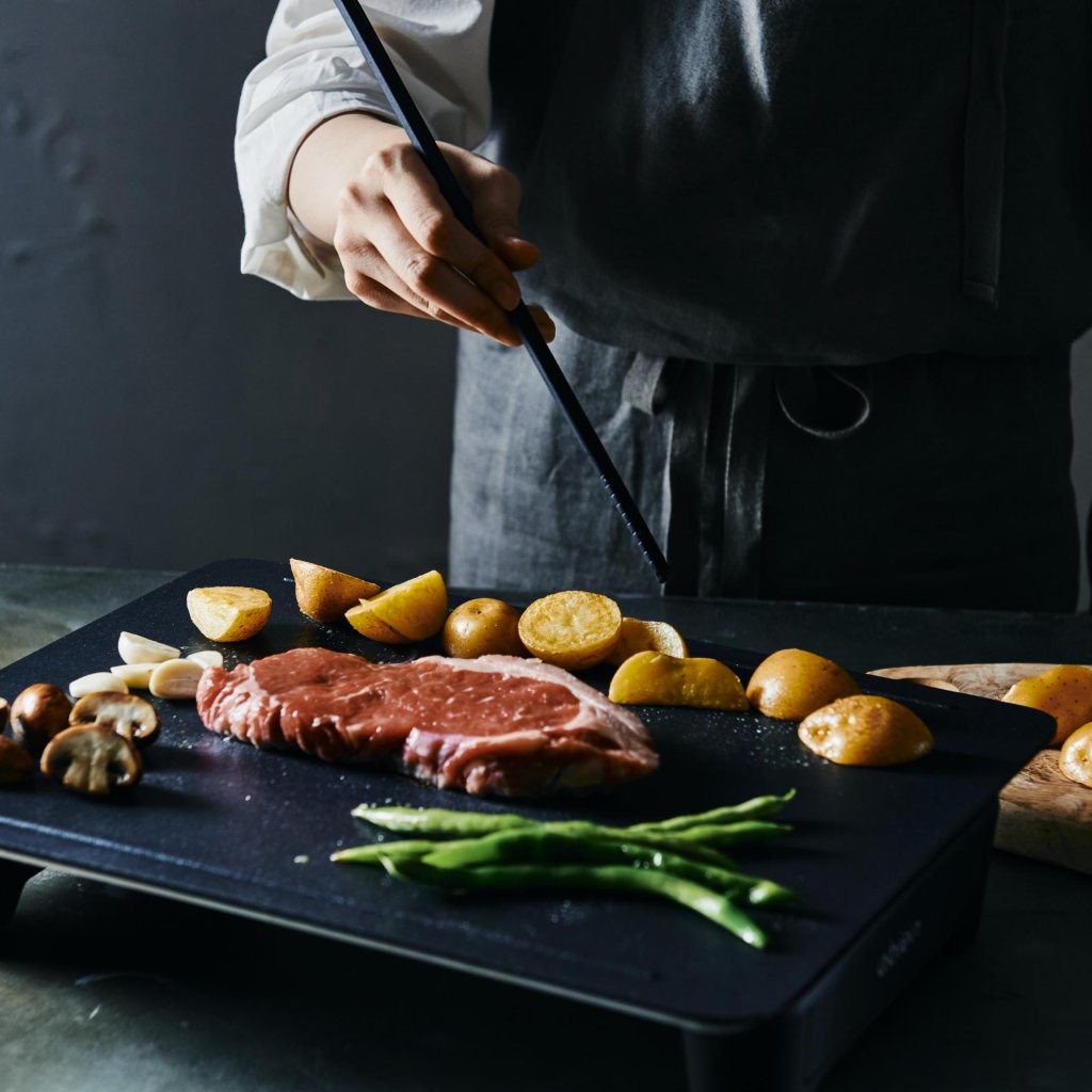 - Tyylikkään litteän grillilevynsä ja ohuen profiilinsa ansiosta se tuo keittiöön ja ruokapöytään japanilaisen Teppanyaki-tyylisen ruoanlaittokokemuksen - ruoanlaiton, joka yhdistää.