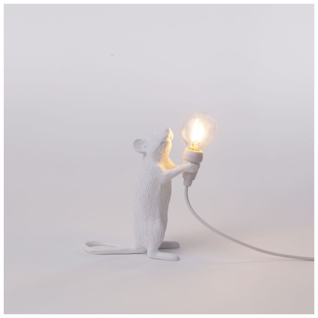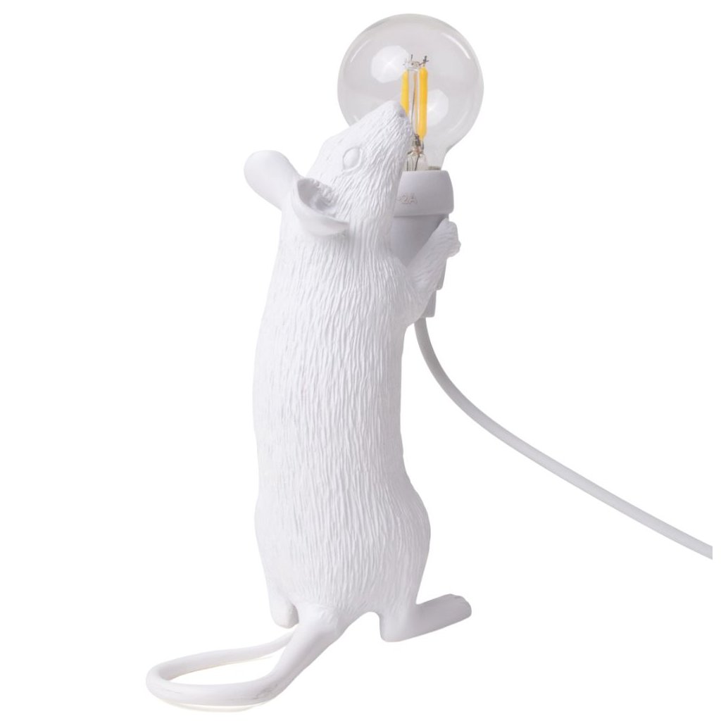 Seletti-pöytävalaisin MOUSE STANDING 14,5 cm, USB-liitäntä, valkoinen