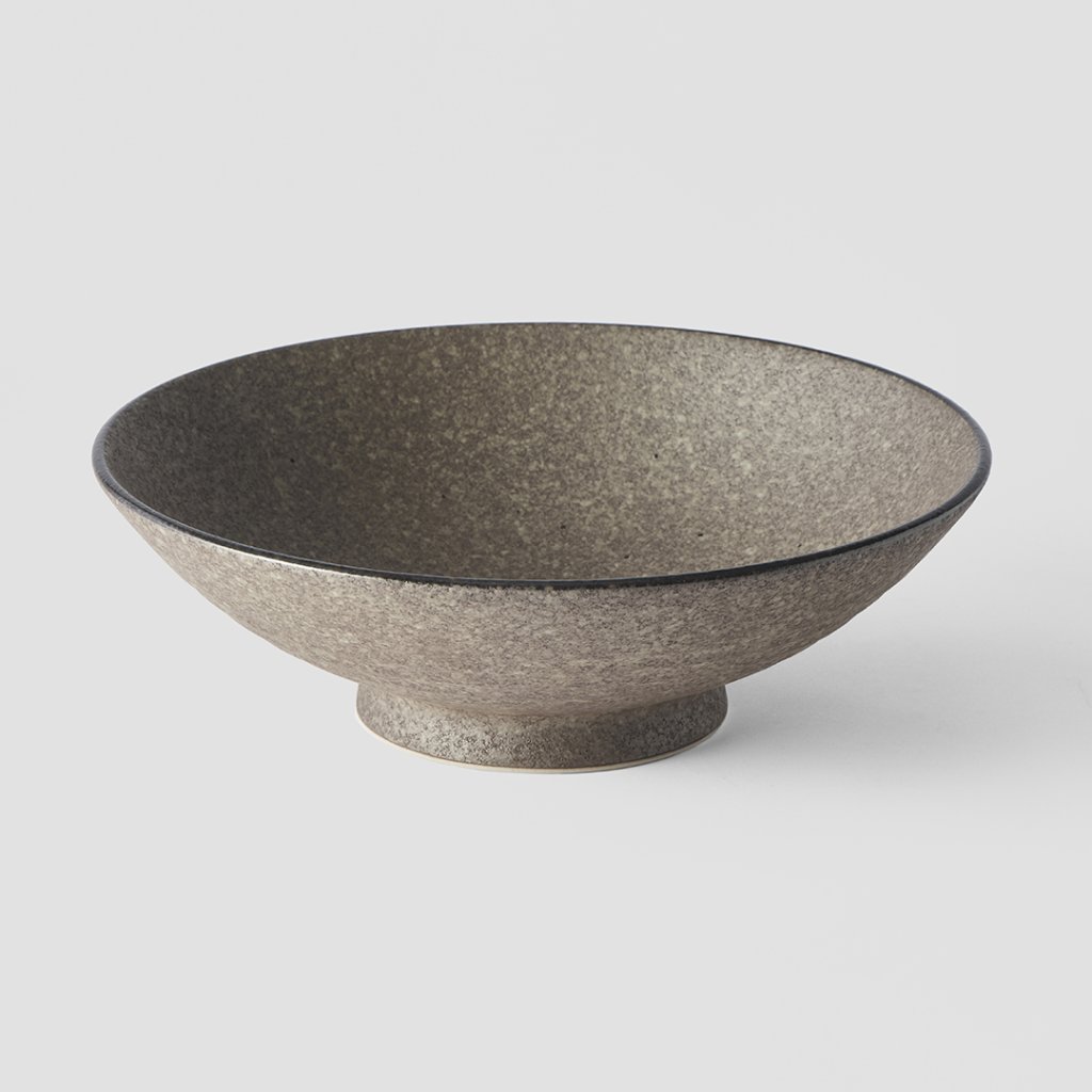 Suuri tarjoilukulho Earth Black -mallistosta MIJ on valmistettu käsin kestävästä luonnonkeramiikasta, joka ei sisällä haitallisia epäpuhtauksia tai raskasmetalleja. Sitä valmistavat japanilaiset mestarit, joiden perinne juontaa juurensa 1200-luvulle. Maalit ovat korkealaatuisia, ne eivät kuoriudu eivätkä sisällä haitallisia aineita.