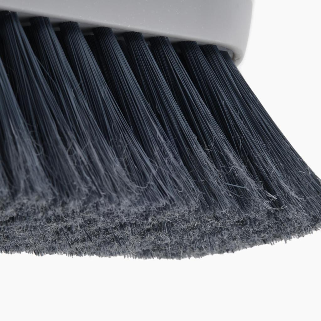 - Harjan erityisesti muotoillut harjakset ovat pehmeät ja tiheät, jotta ne lakaisevat tehokkaasti pois pölyn, muruset ja pienen lian.