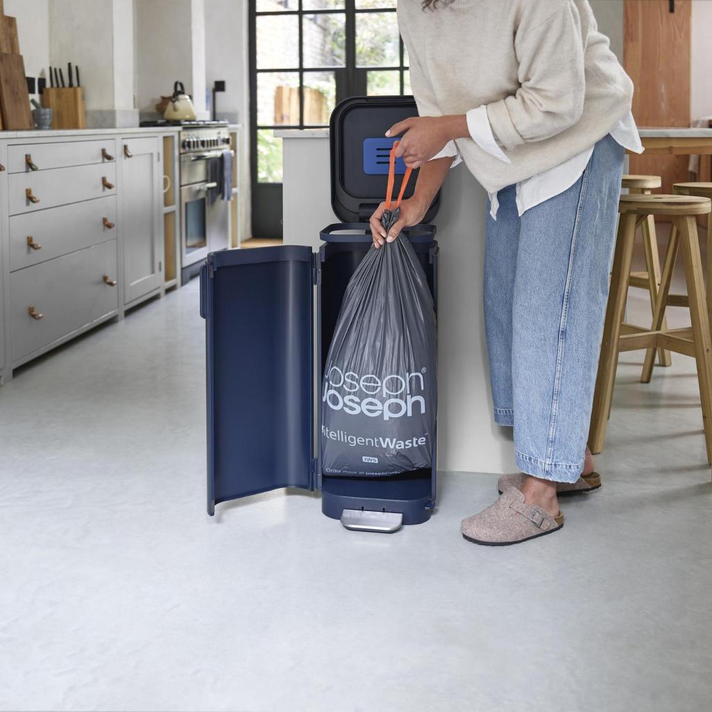 - Roska-astia on yhteensopiva 40 litran tilavuudella varustettujen Joseph Joseph IW5 -pussien kanssa, mutta myös tavallisia sopivan kokoisia pusseja voidaan käyttää.