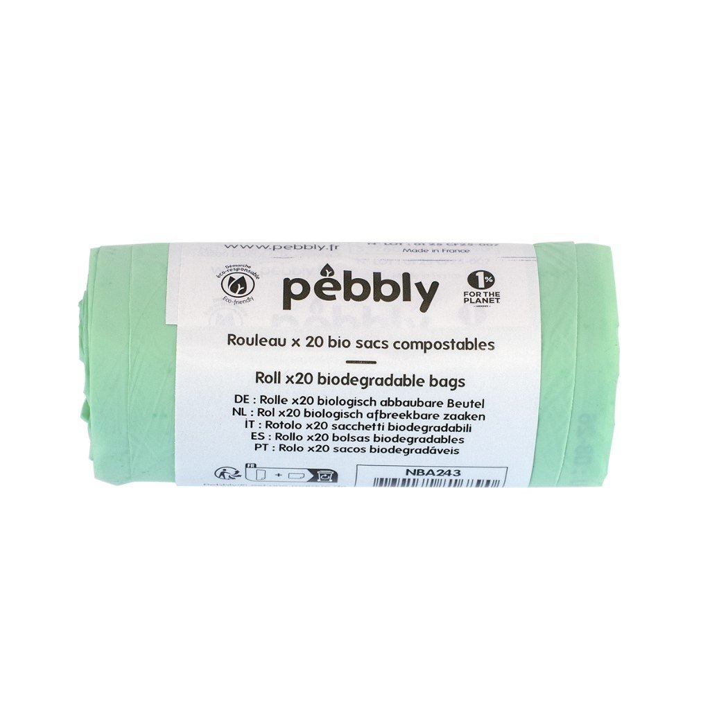 - 20 kompostoituvan ja biohajoavan pussin rulla Pebbly helpottaa kompostointia kotona ja yhteisössä