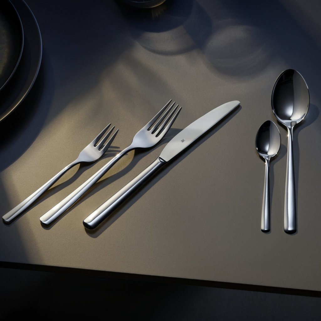 WMF boston-ruokailuvälineet modernissa sileässä muodossa ilman turhia kuvioita ovat mutkattomia jokapäiväiseen käyttöön. Ihanteellinen niille, jotka pitävät yksinkertaisista muodoista. Ruokailuvälineiden pituus ja mittasuhteet ovat sopusoinnussa, joten ne voidaan yhdistää sekä moderniin että perinteiseen.