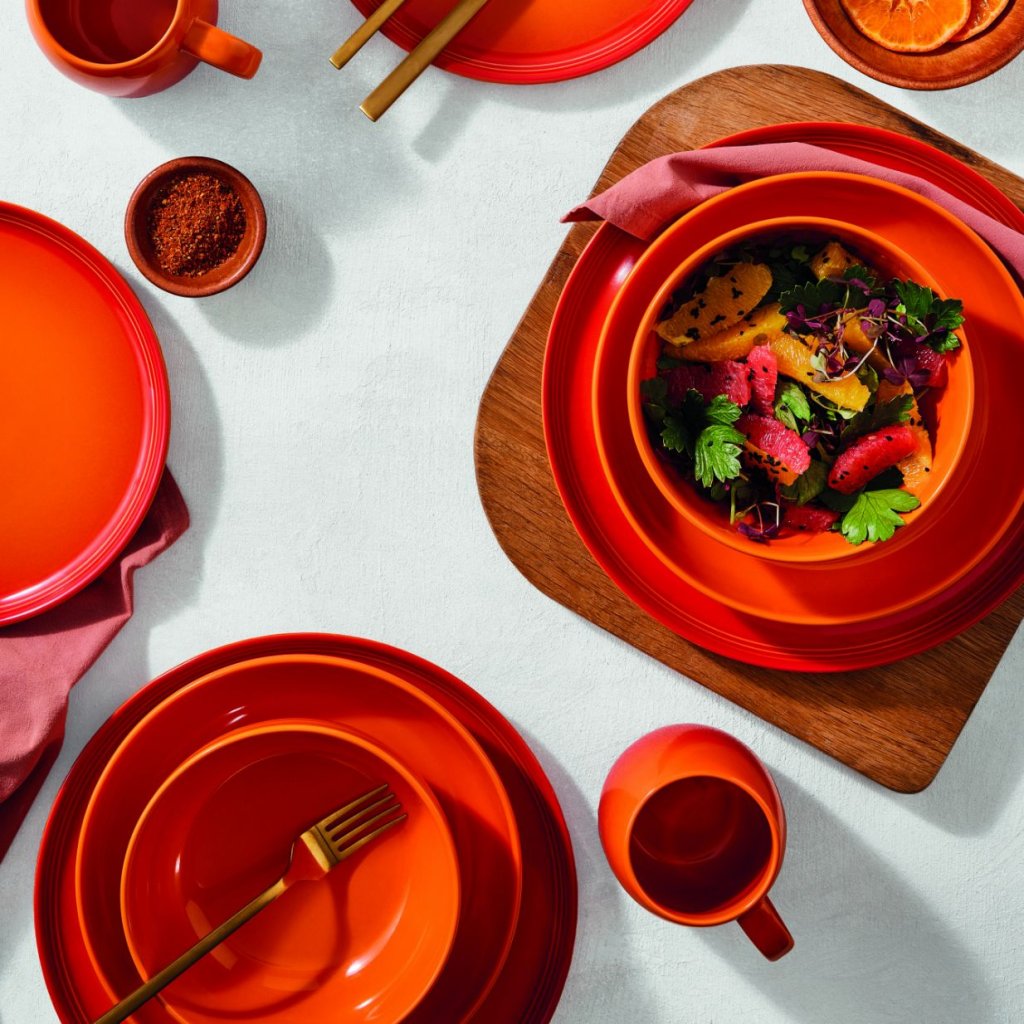 - Kirkkaan oranssinpunaisen sävyinen FLAME tuo energiaa ja lämpöä pöytätabletti -väriin, korostaen kauniisti pöydässä tarjoiltujen aamiaisherkkujen värejä ja sopien täydellisesti yhteen muiden saman sävyisten astioiden Le Creuset kanssa.