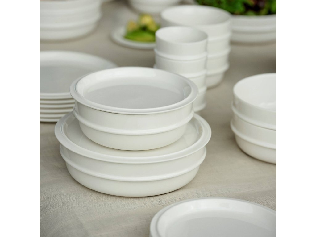 - yksinkertaisen muodon ja käytännöllisen reunan ansiosta kulhot voidaan pinota turvallisesti ja säilyttää tehokkaasti