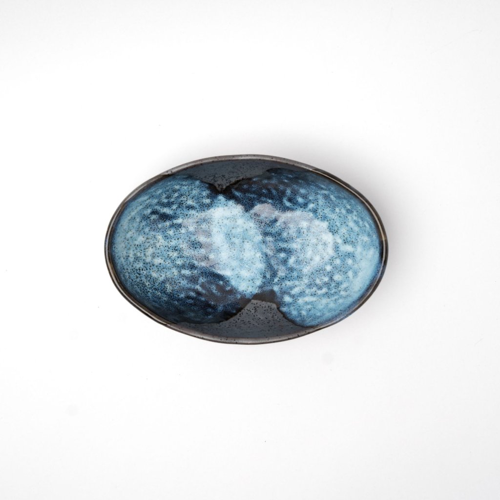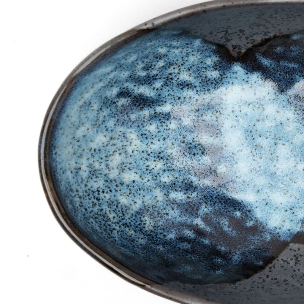 - Syvän sinisen ja syvän mustan kontrasti muistuttaa aaltojen vilkasta liikettä ja luo dramaattisen taustan, joka tuo esiin minkä tahansa ruokalajin värit.