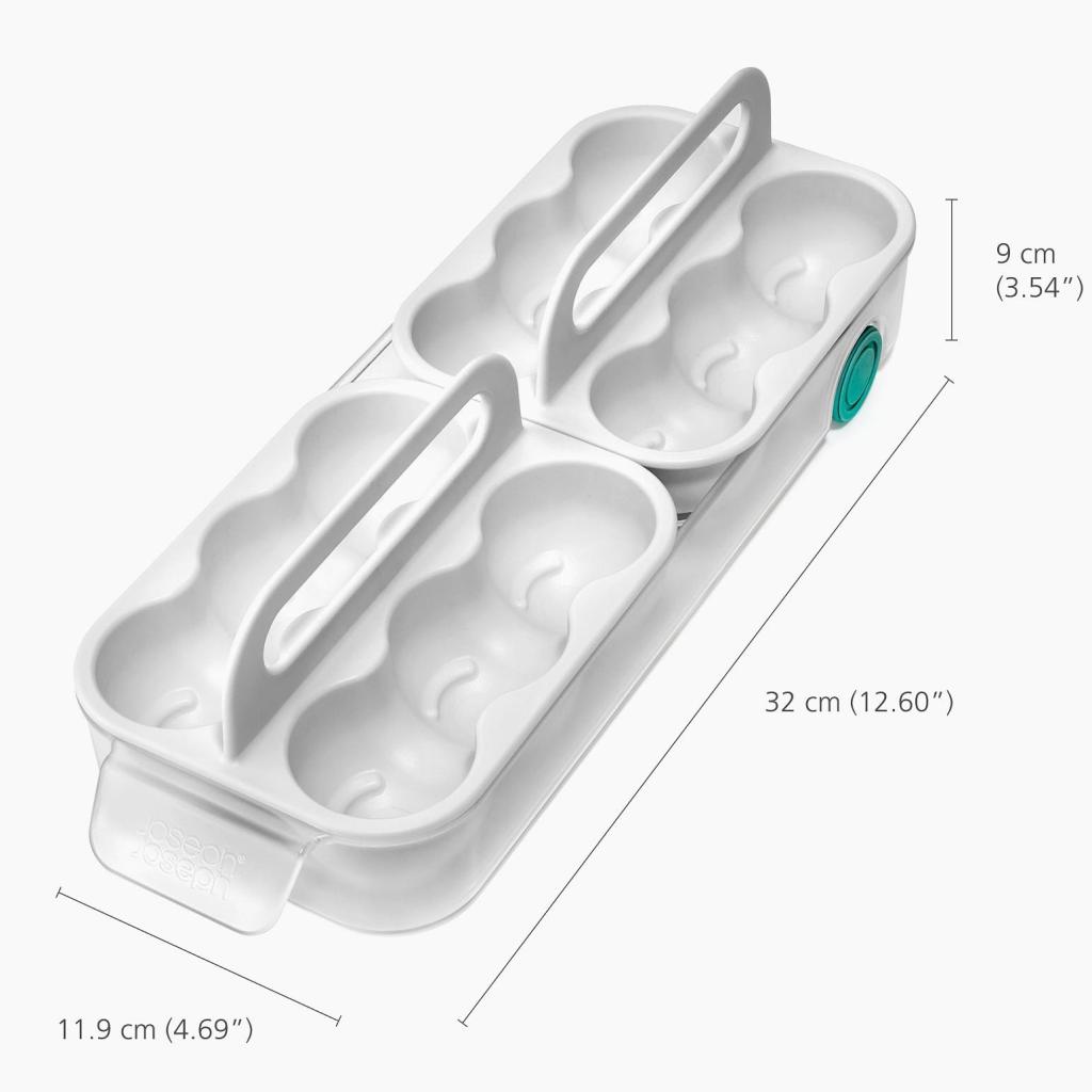 - Kaksi erillistä irrotettavaa lokeroa voi säilyttää jopa kaksitoista munaa, joten sinulla on aina selkeästi säilytetty varasto yhdessä paikassa.