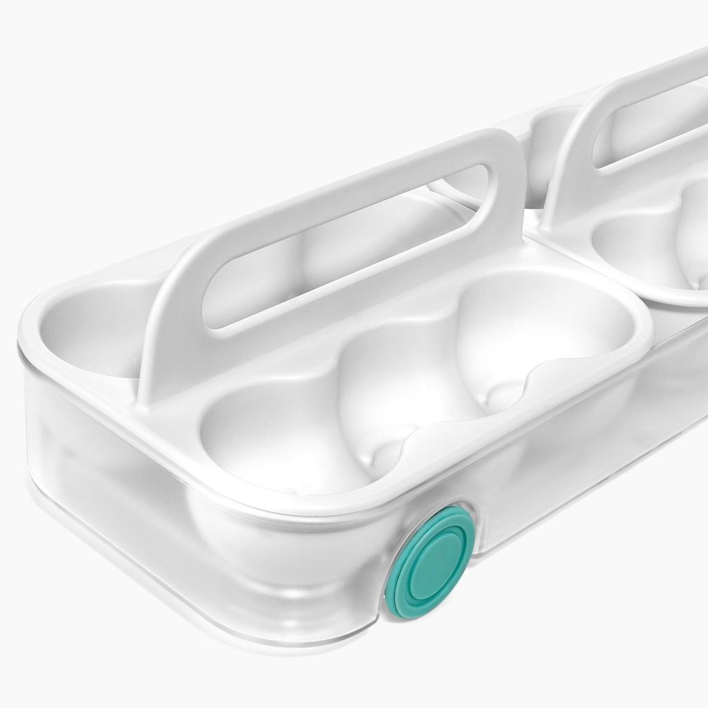 - Käytännöllinen kahva mahdollistaa koko järjestelijän helpon ulosvetämisen jääkaapin hyllyltä ja kätevän pääsyn kaikkiin säilytettyihin muniin.