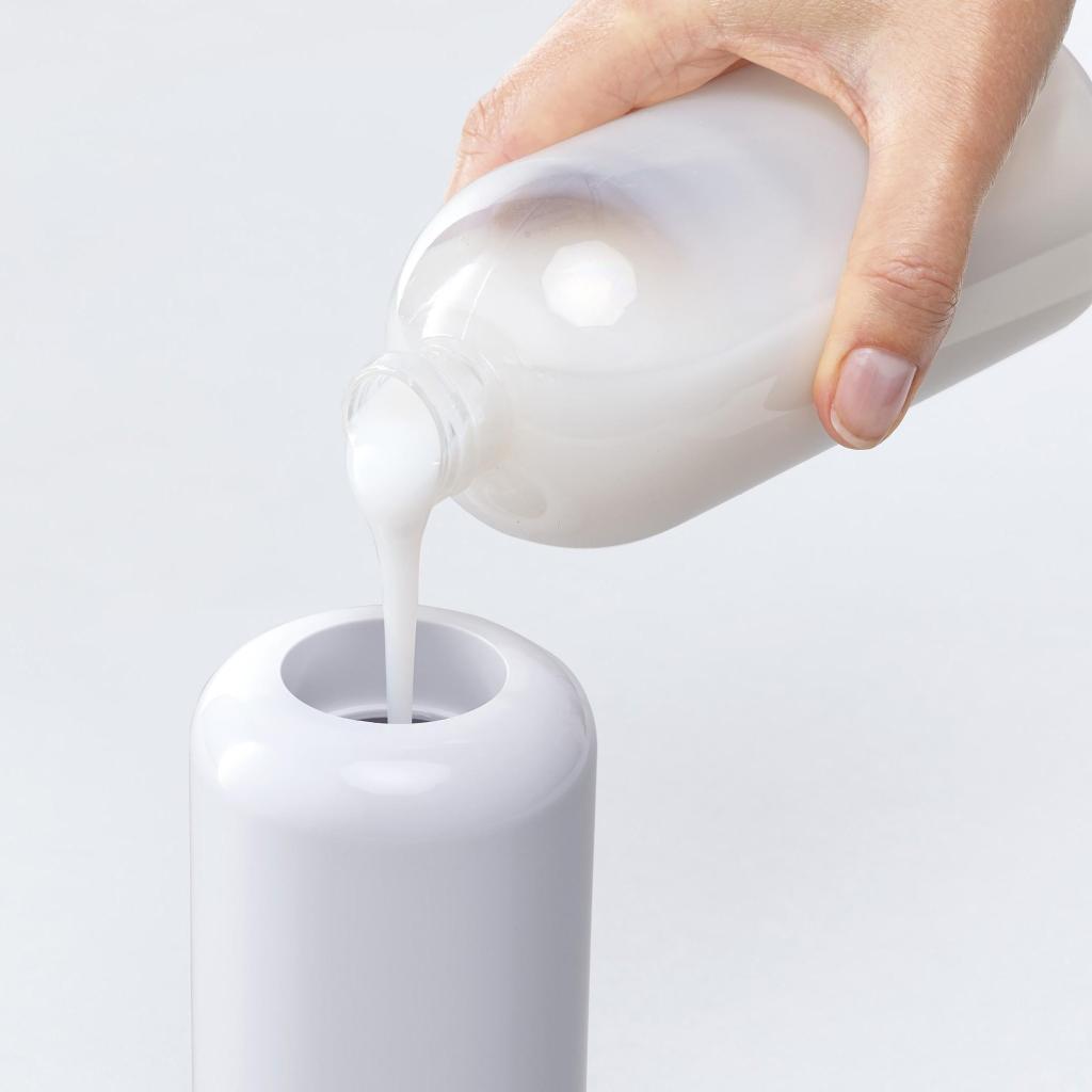 - Luistamaton pohja alareunassa lisää annostelijan vakautta pesualtaalla tai kylpyhuoneen hyllyllä.