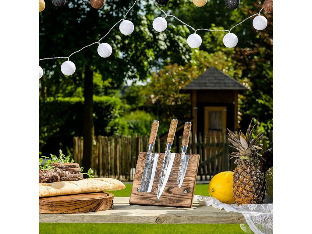 - veitsi toimitetaan tyylikkäässä puisessa lahjapakkauksessa, joka korostaa sen ainutlaatuisuutta ja tekee siitä loistavan lahjan kaikille ruoanlaiton ystäville