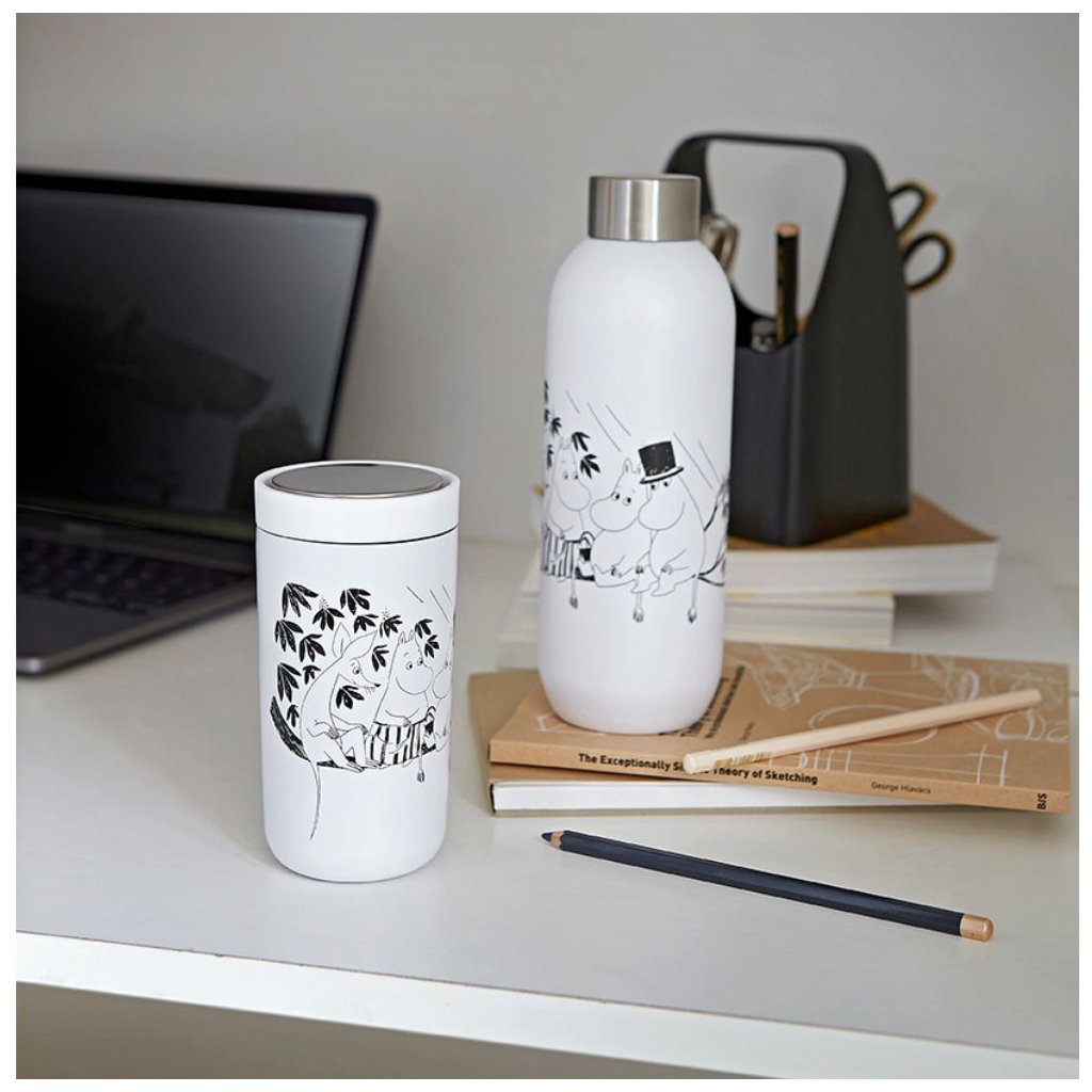 Stelton-termospullo TO GO CLICK MOOMIN 750 ml, pehmeä valkoinen