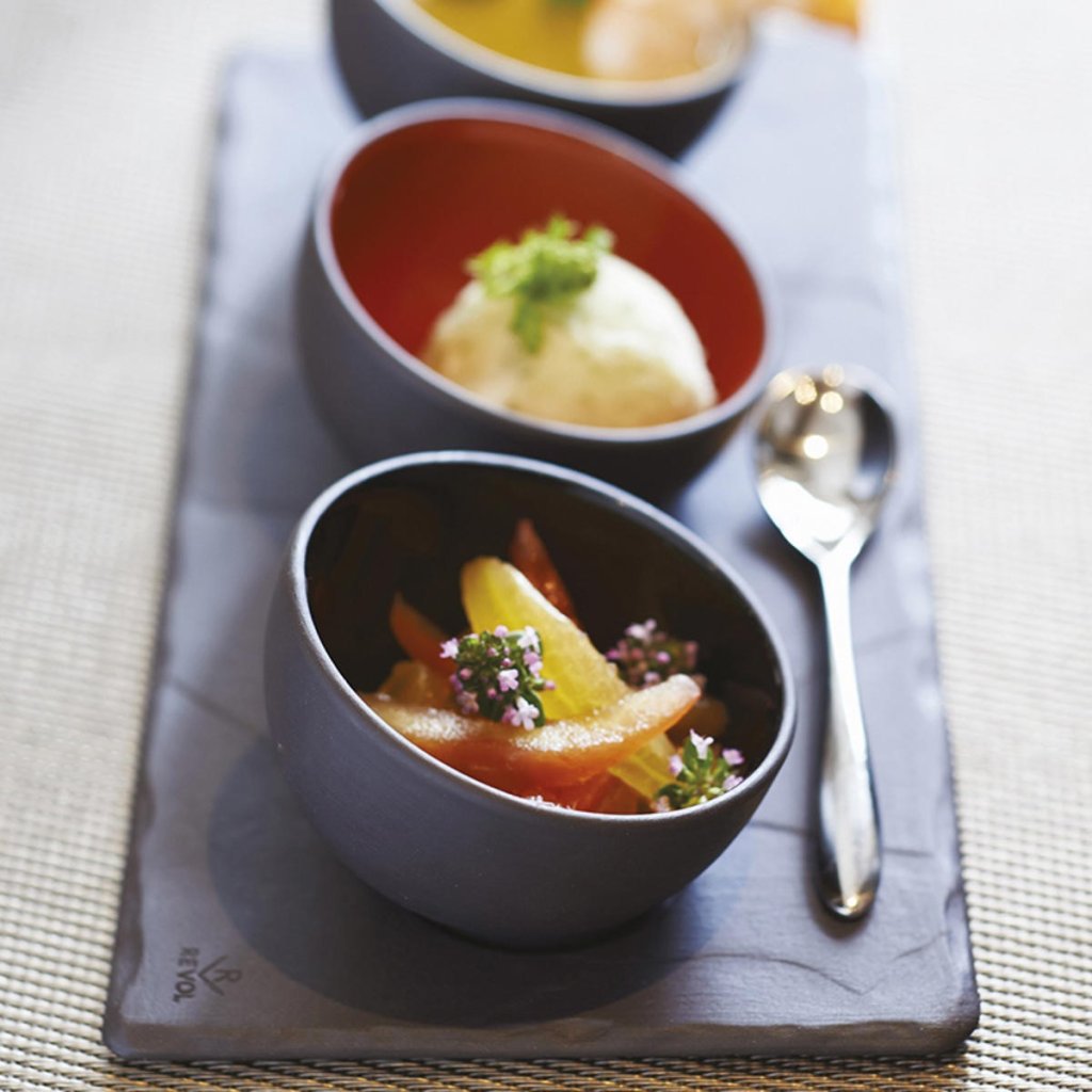 Revol je výrobce kulinářského porcelánu nejvyšší kvality a mimořádně atraktivního designu, který je oceňován nejlepšími světovými kuchaři. Jeho nezaměnitelné produkty jsou vyráběny z vlastní směsi porcelánu s tajnou recepturou obsahující směs hlíny, křemene, živce a kaolínu. Díky tomu si firma může vlastnosti porcelánu uzpůsobit svému výrobnímu procesu a garantovat tak výslednou kvalitu. Inspirace francouzskou kuchyní se projevuje tradičními tvary a proporcemi, které jsou oživeny barevnou, ručně nanášenou glazurou. Široký sortiment uspokojí i ty nejnáročnější milovníky vaření a stolování a v nabídce tak najdete téměř vše od porcelánového talíře po slánku. Kuchyňský porcelán Revol je mimořádně odolný, vhodný do trouby až do 300 °C, do mikrovlnné trouby i do myčky. Ruční výrobou se na výrobku mohou vyskytnout drobné odchylky od 100% dokonalosti, které podtrhují autenticitu a nemají vliv na funkčnost produktů. Každý kus je tak originál.
