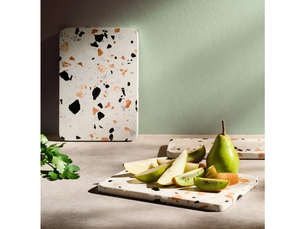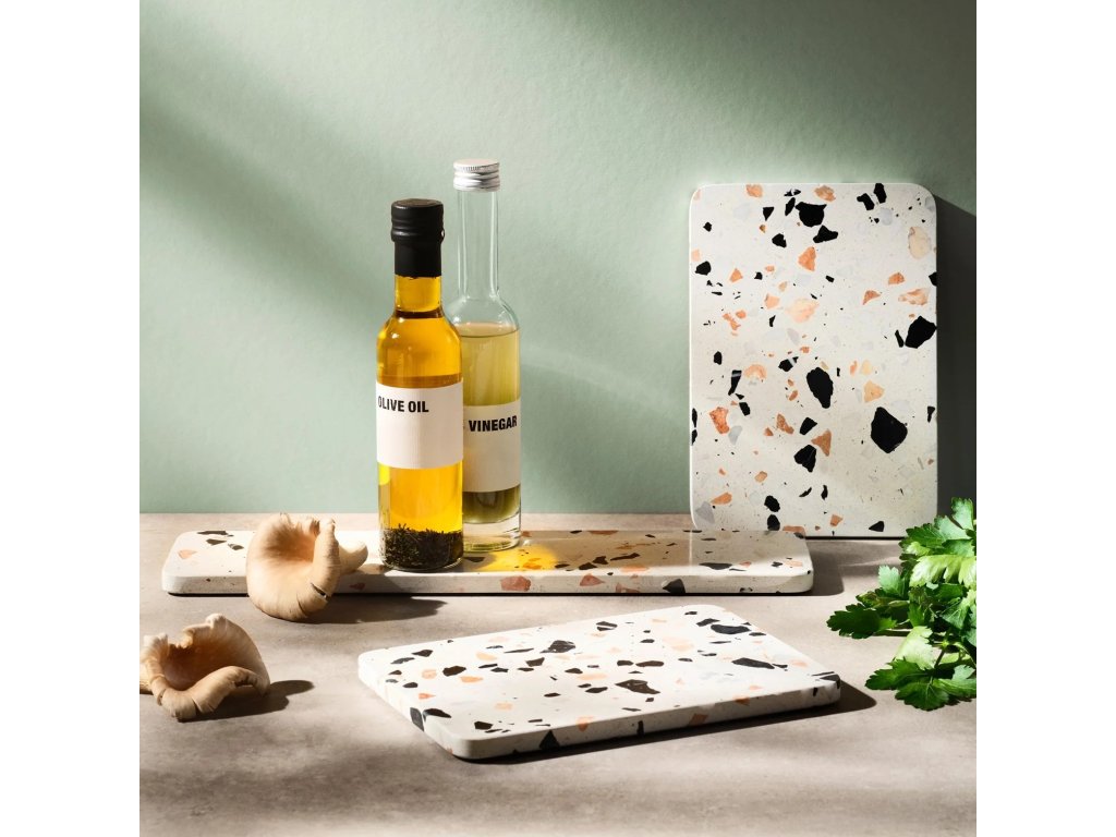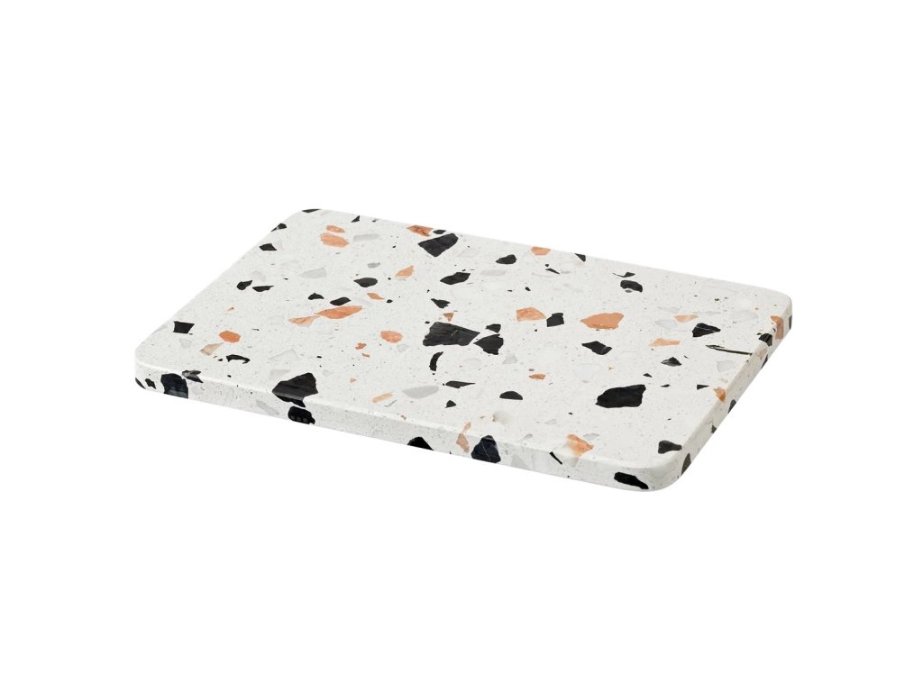 - valmistettu terrazzo-materiaalista, joka antaa jokaiselle kappaleelle ainutlaatuisen ja eloisan ilmeen värikkäiden yksityiskohtien ansiosta