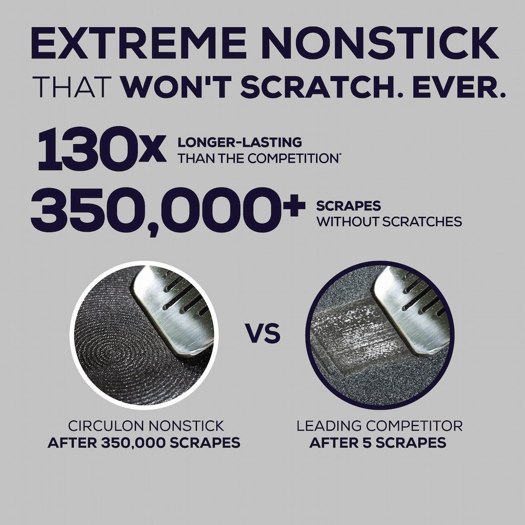 - Innovatiivinen tarttumaton pannu lasikannella Circulon SCRATCHDEFENSE A1 tarjoaa mullistavan naarmuuntumisenkestävyyden ja erittäin pitkän käyttöiän