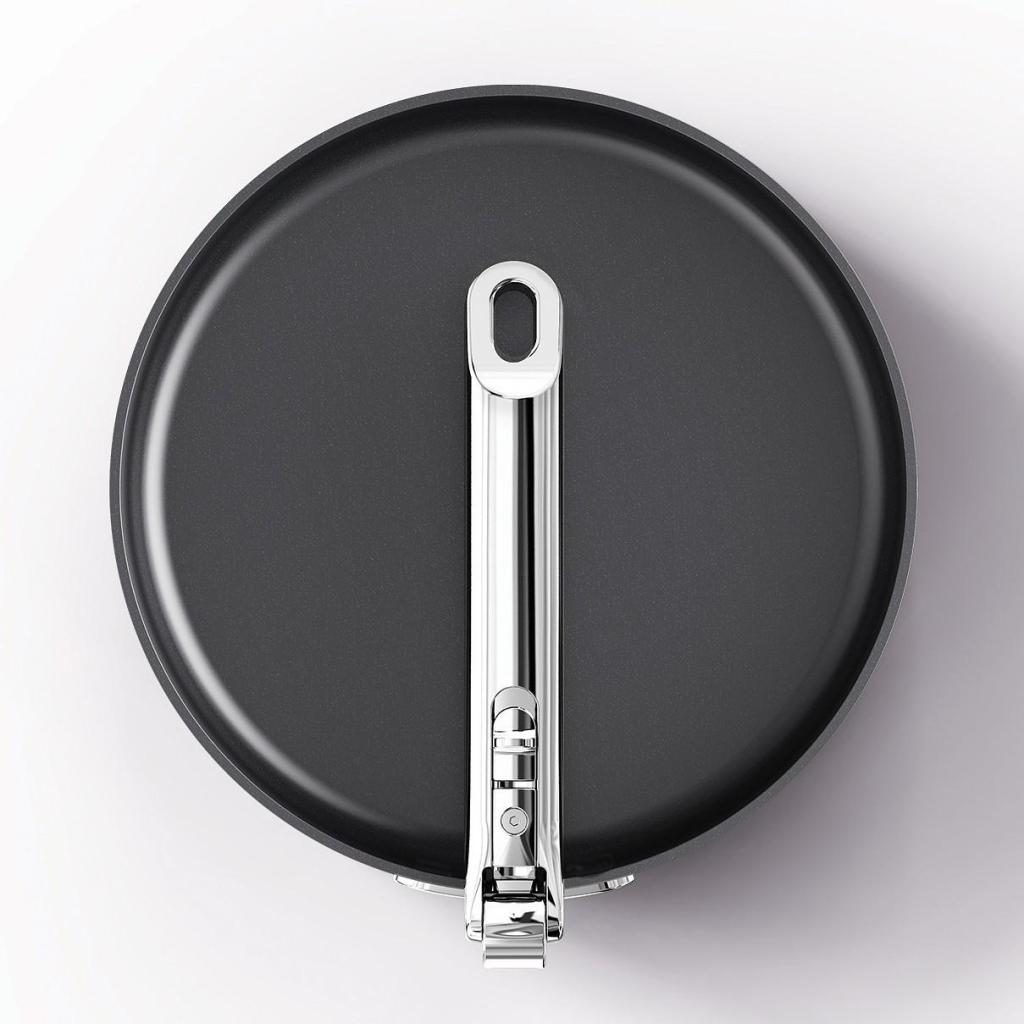 - Taitettava ruostumattomasta teräksestä valmistettu kahva SwingLock™-teknologialla varmistaa tukevan lukituksen ruoanlaiton aikana ja pienentää huomattavasti säilytystilan tarvetta kokoontaitettuna.