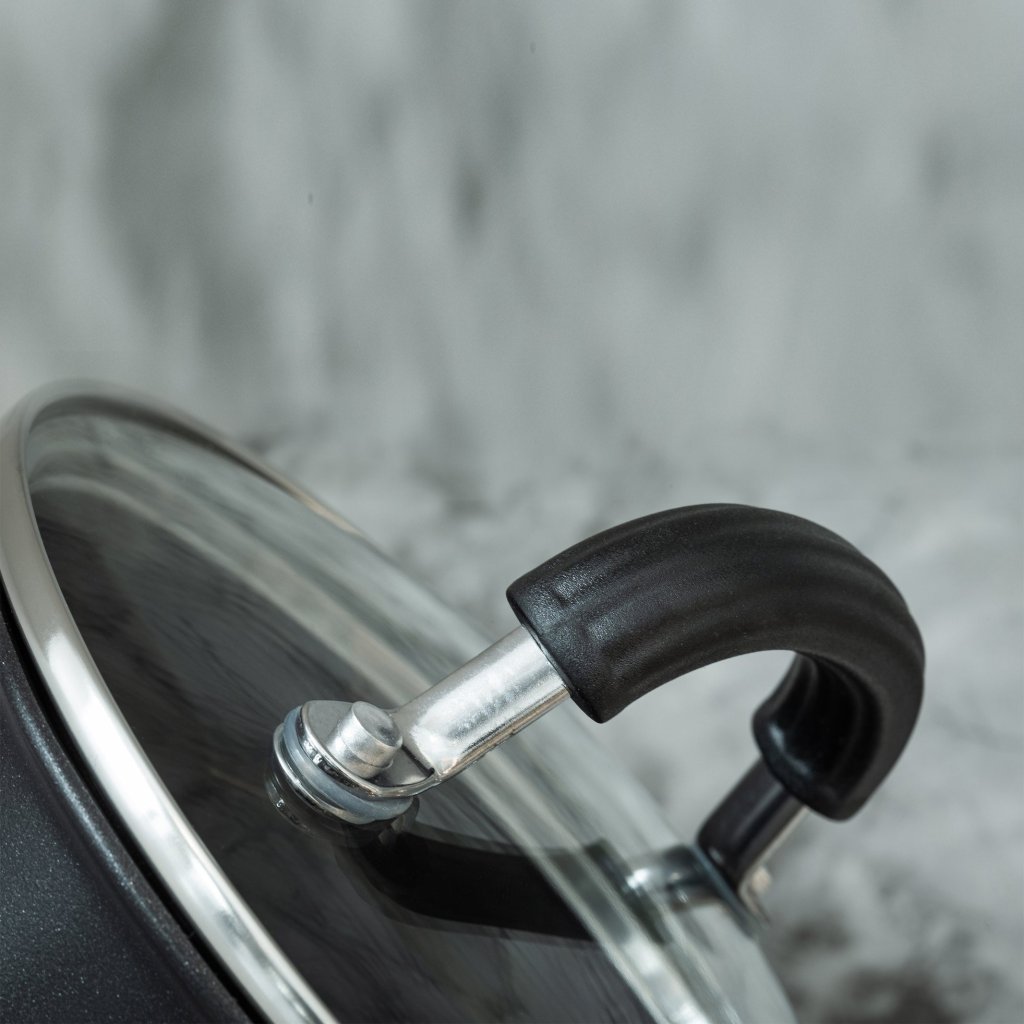 - Kupulasi kattilan kansi säilyttää kosteuden ja ravinteet pannussa ja mahdollistaa kypsennysprosessin tarkkailun entistä täydellisemmän lopputuloksen saavuttamiseksi