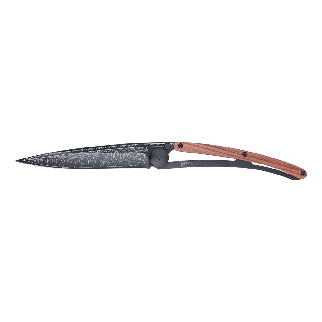 deejo-taskuveitsi TATTOO FEATHER 37 g, ruusupuu, musta