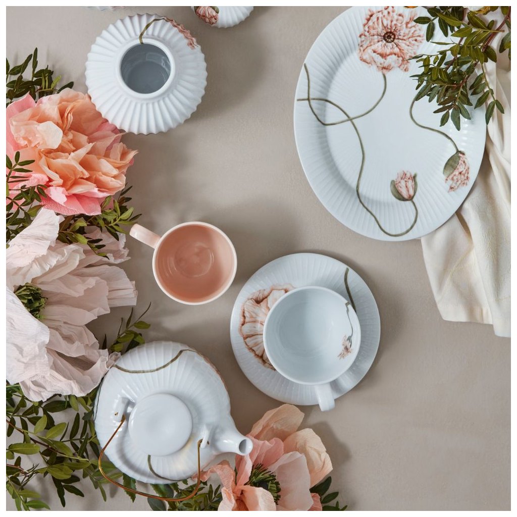 Kähler-teekuppi lautasella HAMMERSHOI POPPY, 380 ml, valkoinen