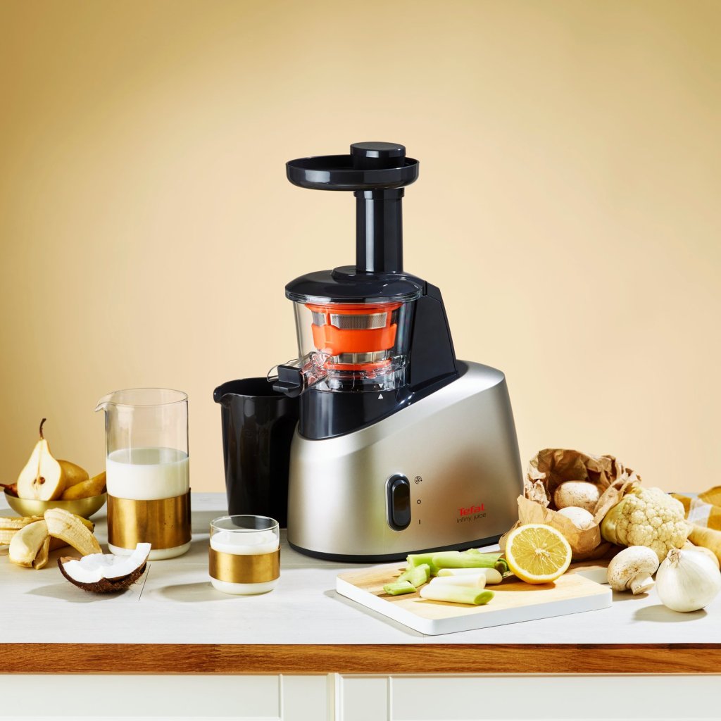 - hitaan pyörimisen ansiosta saat jopa 2 kertaa enemmän mehua, vitamiineja ja antioksidantteja kuin klassisessa sentrifugimehustimessa Tefal