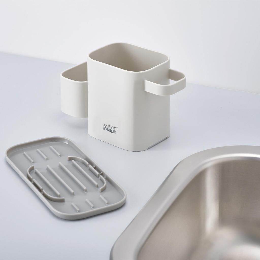 - Käytännöllinen tiskiallasteline Joseph Joseph DUO tarjoaa selkeän ja kompaktin ratkaisun astianpesuaineiden säilyttämiseen aivan keittiön altaan vieressä.