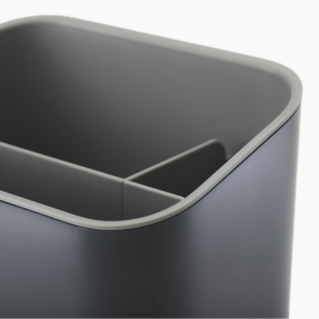 - Porrastettu sisäpuolen muotoilu mahdollistaa paremman yleiskuvan säilytetyistä apuvälineistä ja helpottaa niiden nopeaa tarttumista astioiden pesun aikana.