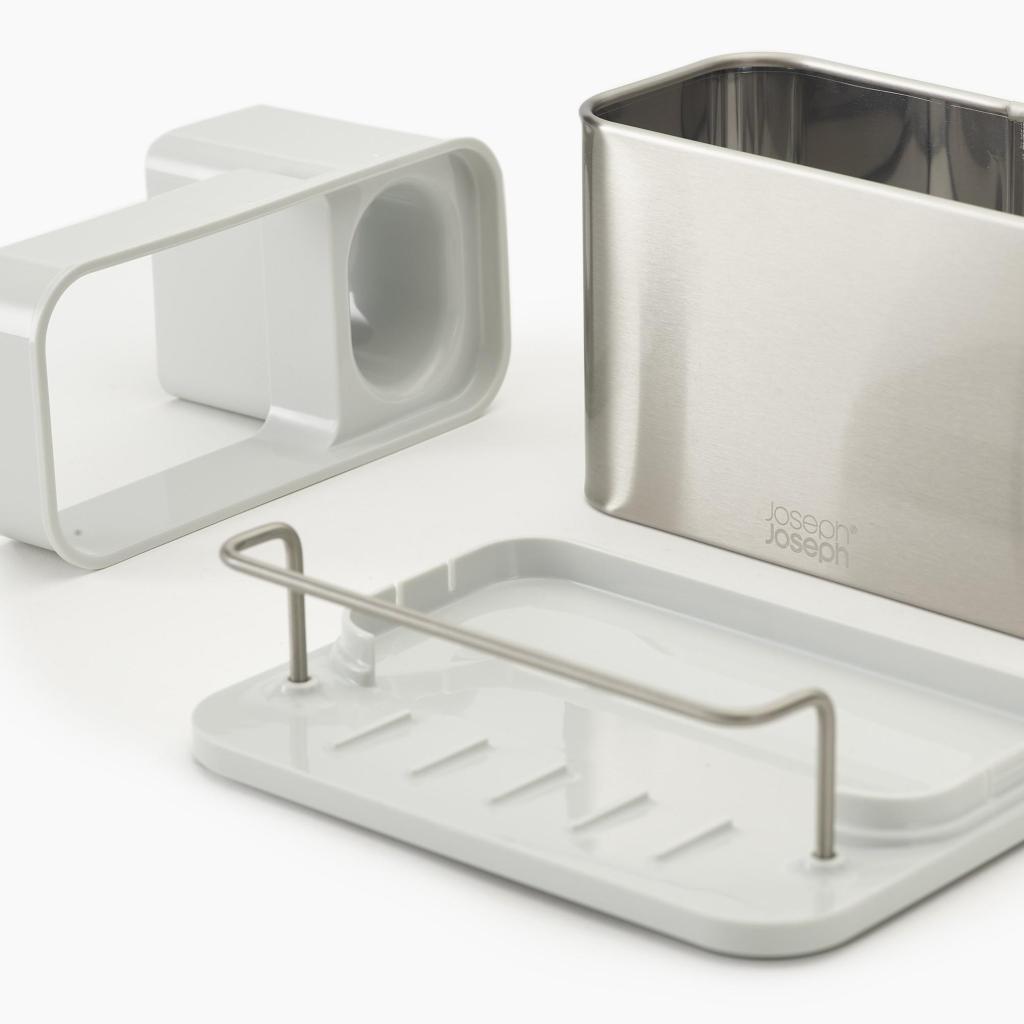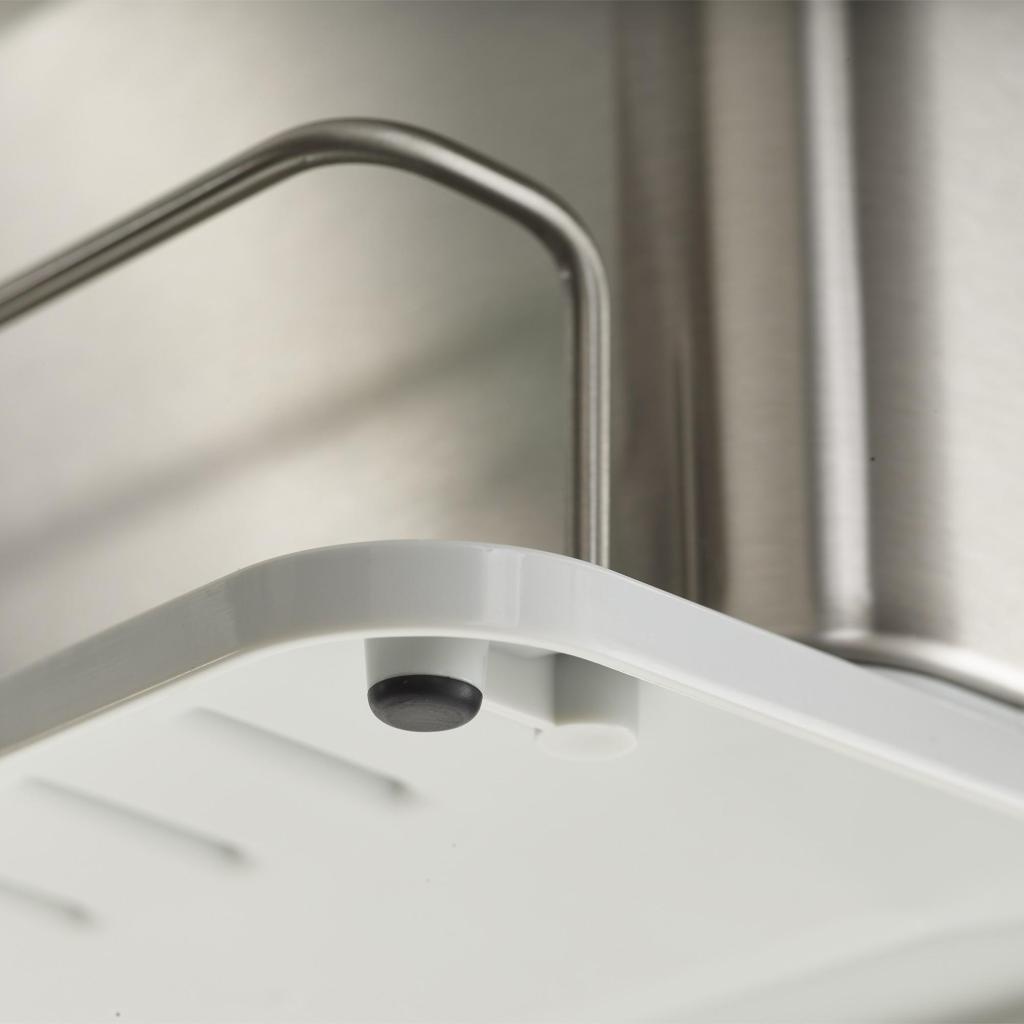 Joskus tuntuu, että tiskialtaan äärellä on kuin pienessä laboratoriossa täynnä sienet, harjat ja pullot, jotka ovat tiellä toisilleen. Tämä ruostumattomasta teräksestä valmistettu järjestäjä tuo niille selkeän järjestyksen ja erottaa yksittäiset apuvälineet niin, että jokaisella on oma paikkansa. Improvisaation sijaan tulee yksinkertainen järjestelmä, joka toimii joka päivä.