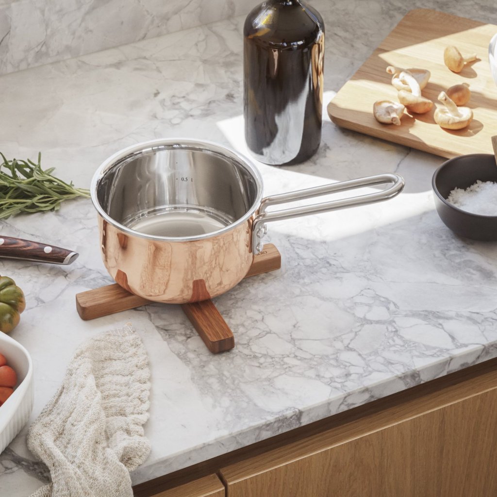 Tämä magneettialusta Eva Solo koostuu kahdesta osasta ja suojaa pöytääsi kuumuudelta ja ei-toivotuilta naarmuilta. Alustassa oleva magneetti pitää kuumat teräksiset kattilat ja pannut tukevasti paikoillaan. Maton voi taittaa klassiseen ristin muotoon tai sen osia voi käyttää suurempien astioiden alla. Sitä on saatavana useissa trendikkäissä väreissä.
