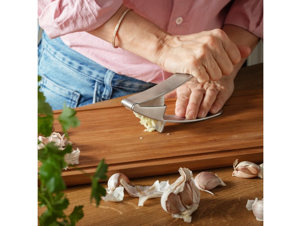 - kätevä keittiötyökalu, jonka avulla valkosipulin puristaminen on nopeaa ja helppoa pienellä vaivalla