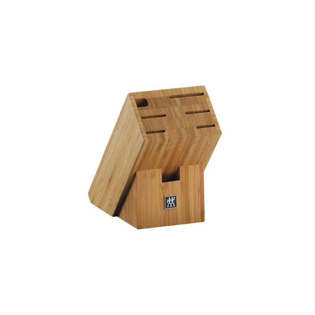 Veitsilohko, jossa on viistetty reuna ZWILLING, on valmistettu bambusta, jossa on kaunis, huomiota herättävä rakenne. Lohkossa on tilaa 5 veitselle, teroittimelle ja saksille. Veitset on suojattu tylsistymiseltä, mutta ne ovat silti helposti saatavilla. Käytetyn materiaalin ja modernin muotoilun yhdistelmä on ajaton.