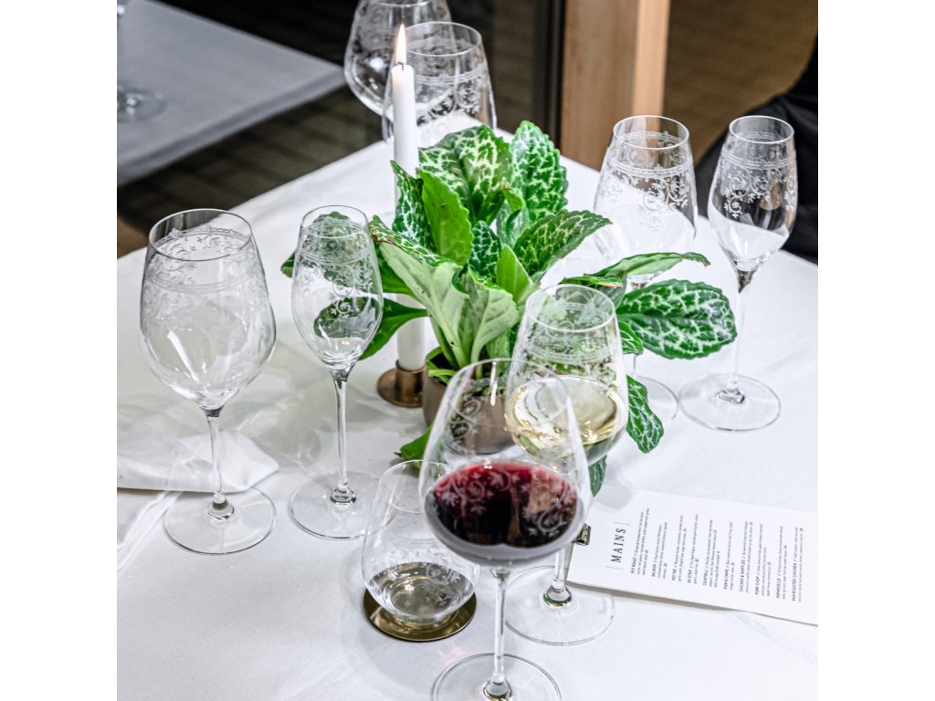- ainoana kokoelmana osoitteesta Spiegelau on hieno pantografinen kaiverrus kasviaiheista