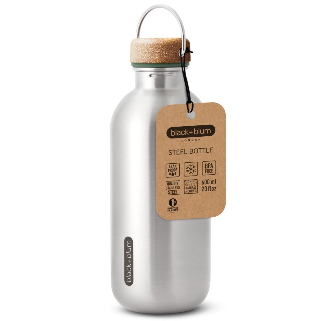 Vesipullo 600 ml, oliivi, ruostumaton teräs, Black+Blum