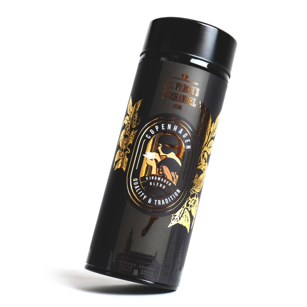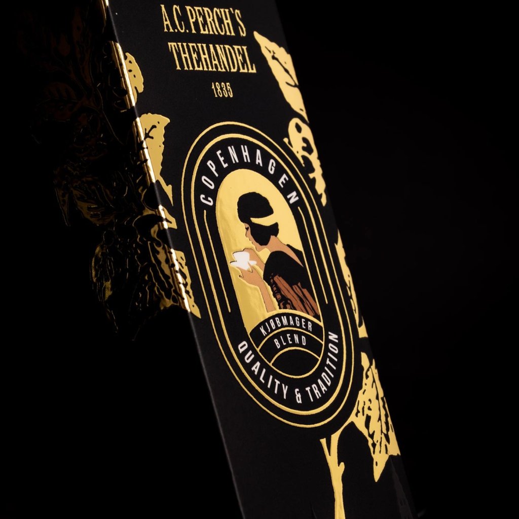 - Mustan ja kullanvärisessä, tyylikkäässä pakkauksessa on Kööpenhaminan siluettikuvio, ja se viittaa A.C. Perchin Thehandel-brändin perinteisiin ja arvostukseen.
