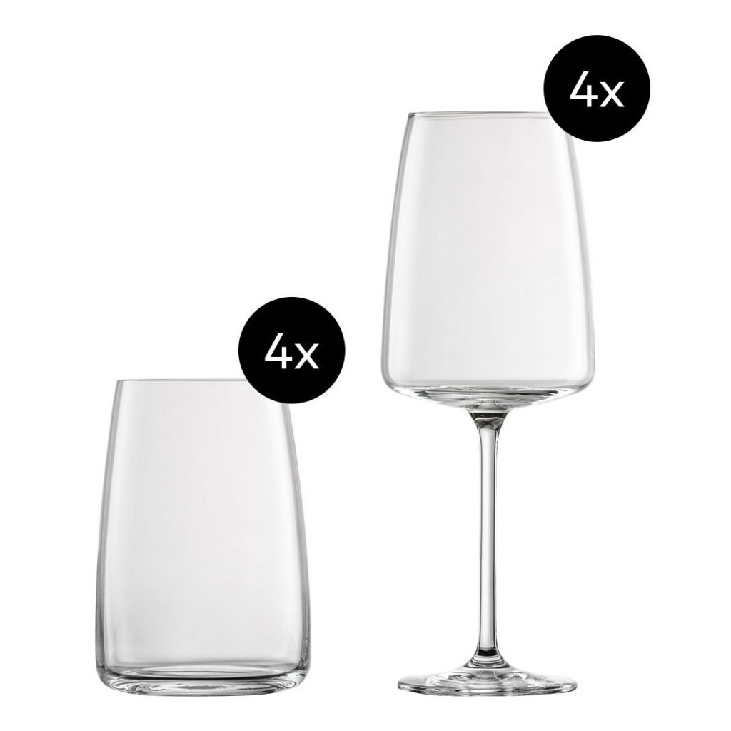 - lahjapakkaus VIVID SENSES osoitteesta Zwiesel Glas sisältää 4 universaalia viinilasi ja 4 juomalasi