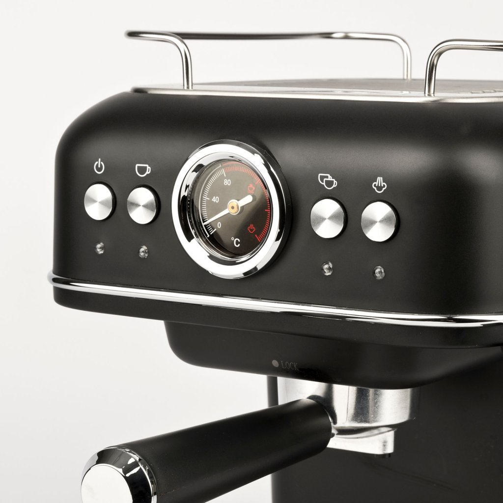 - sisäänrakennetun lämpömittarin avulla voit säätää veden lämpötilaa täydellisen espressotuloksen saavuttamiseksi