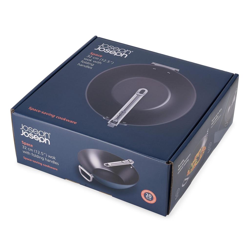 - Wokkipannu Joseph Joseph SPACE on suunniteltu intensiiviseen paistamiseen, uppopaistamiseen, keittämiseen ja hauduttamiseen suurina määrinä, painottaen tilansäästöä säilytyksessä.