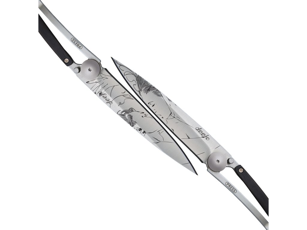 KdyĹľ v roce 2010 kamarádi Luc Foin a Stepháne Lebeau uvedli na trh prvnĂ noĹľe deejo, netušili, Ĺľe se netradiÄŤnĂ design „tetovanĂ˝ch“ kapesnĂch nožů stane takovĂ˝m hitem. GravĂrovaná tetovánĂ ÄŤepelĂ jsou navrhována reálnĂ˝mi tatĂ©ry, pĹ™esnÄ› na mĂru zákaznĂkĹŻm a jejich aktivitám, a v nabĂdce znaÄŤky najdete i sady steakovĂ˝ch nožů nebo soupravu, s nĂĹľ si mĹŻĹľete nĹŻĹľ ozdobit vlastnĂm návrhem.