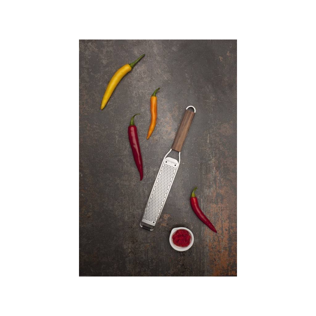 Značka Microplane® je pro spoustu kuchařů synonymem pro maximálně ostrá struhadla. Americká rodinná firma je mezi zapálenými nadšenci i profesionálními šéfkuchaři oblíbená od poloviny 90. let minulého století a proslavila se zejména struhadly ve tvaru dřevařské rašple. Na technologické výjimečnosti jejích produktů se odráží i speciální metoda fotoleptu, která jednotlivým nerezovým plochám zaručuje vpravdě výjimečnou ostrost. Značka se však v kuchyni nezastavila a na trhu tak dnes naleznete i její nástroje na obrábění dřeva nebo pomocníky pro péči o tělo.